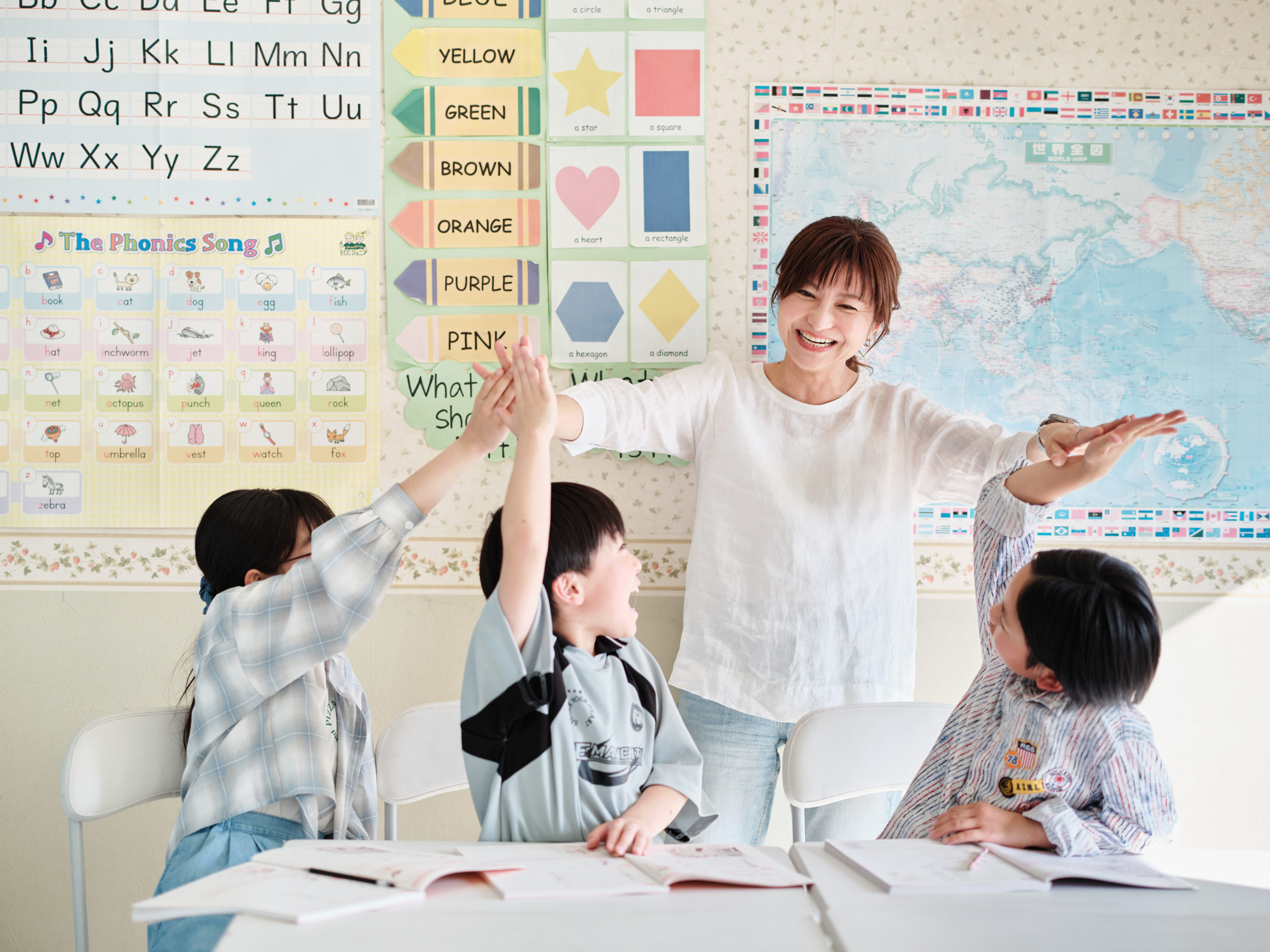 ECCジュニアのホームティーチャーは、児童英語教授法を修得したバイリンガル講師です。ホームティーチャーの最も良いところは、子どもたち一人ひとりの表情を読み取り、気持ちを理解し、温かいコミュニケーションがとれるところです。だからこそ子どもたちの「好き」が続き、生きた英語を身につけることができるのです。また、お家の方にお子さまの様子や成長をお伝えし、色々な質問やご要望をおうかがいできるのも、ホームティーチャーならではのメリットです。